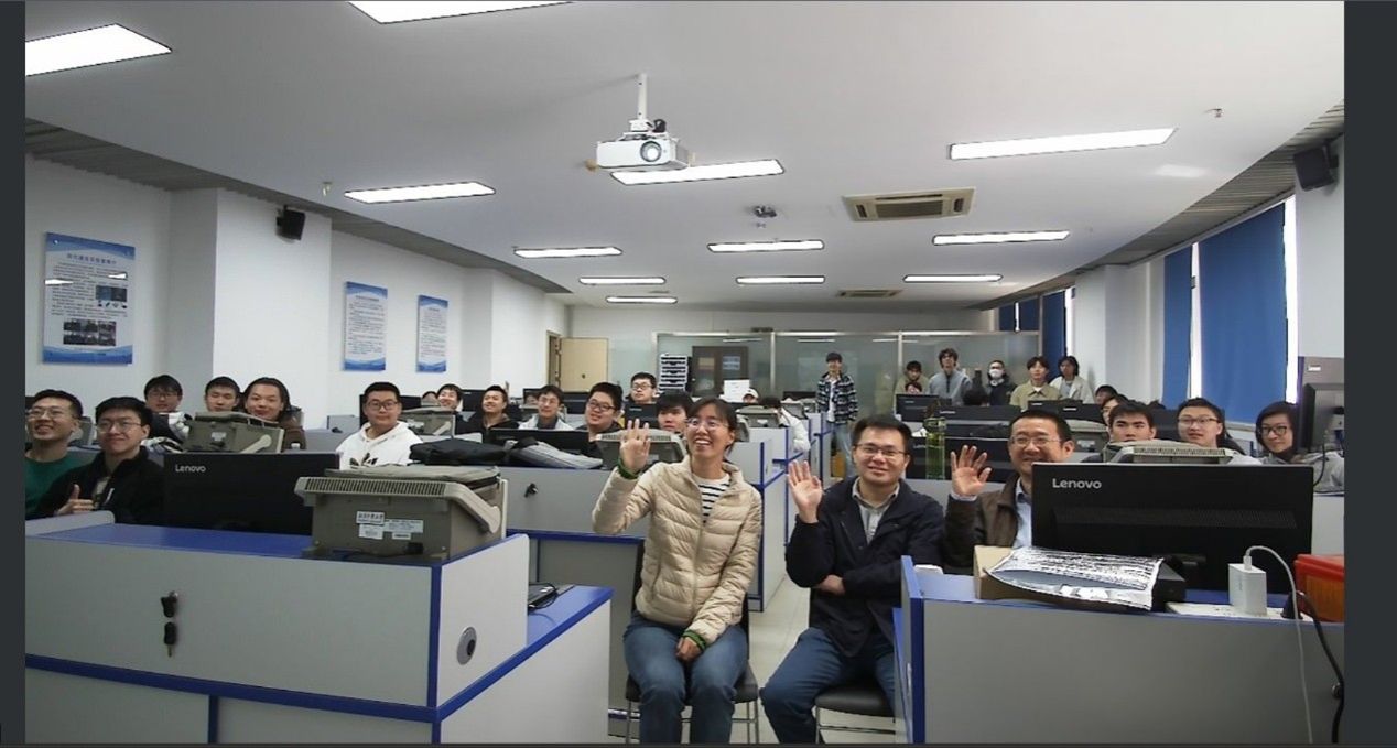 图为北邮沙河工程实验楼智慧实验室授课合影,屏幕端为yl7703永利集团官网师生
