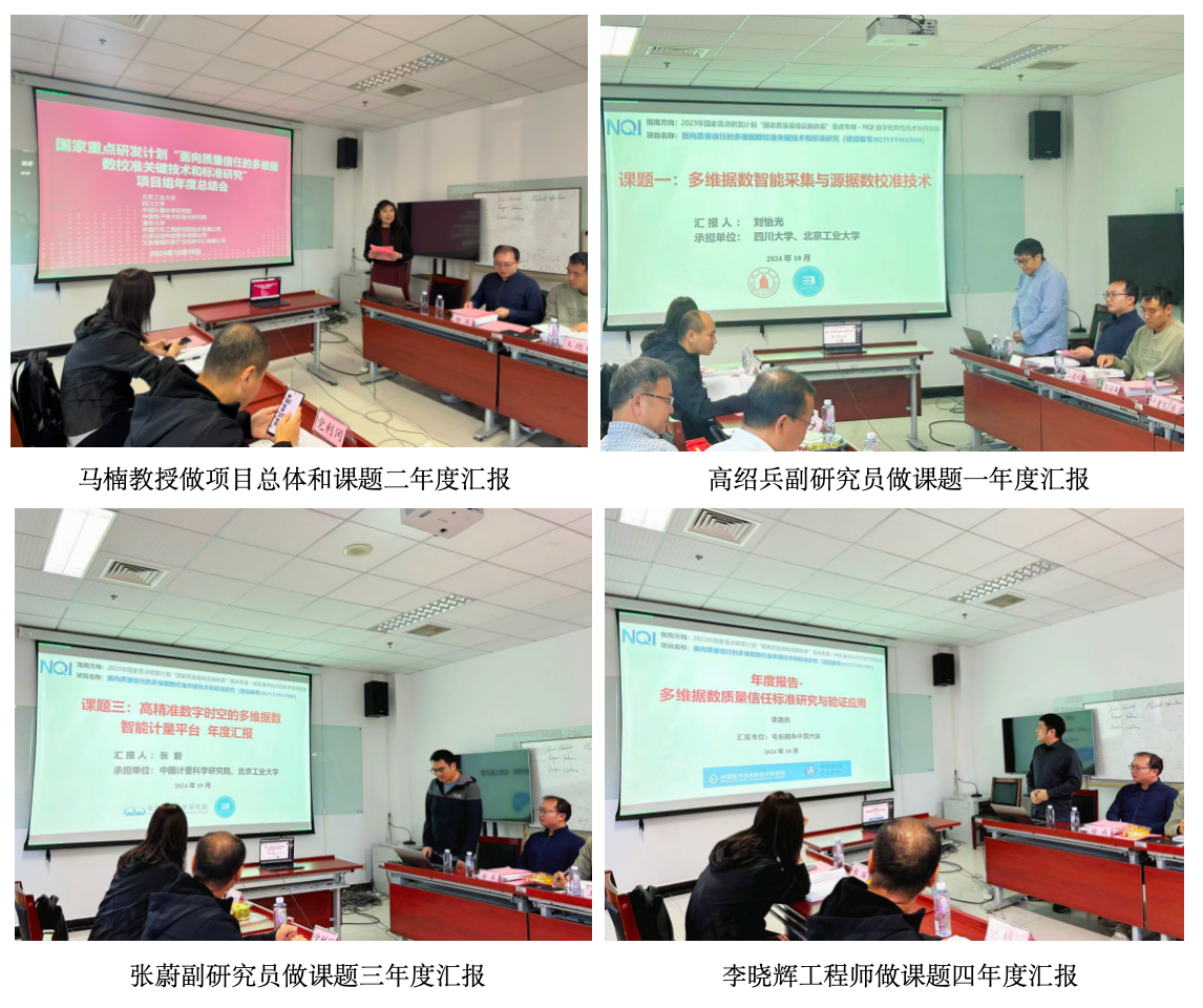 项目负责人马楠教授从“面向质量信任的多维据数校准关键技术和标准研究”项目的总体情况和年度执行情况进行了汇报,各课题负责人/项目骨干分别对四个课题进行了详细陈述。