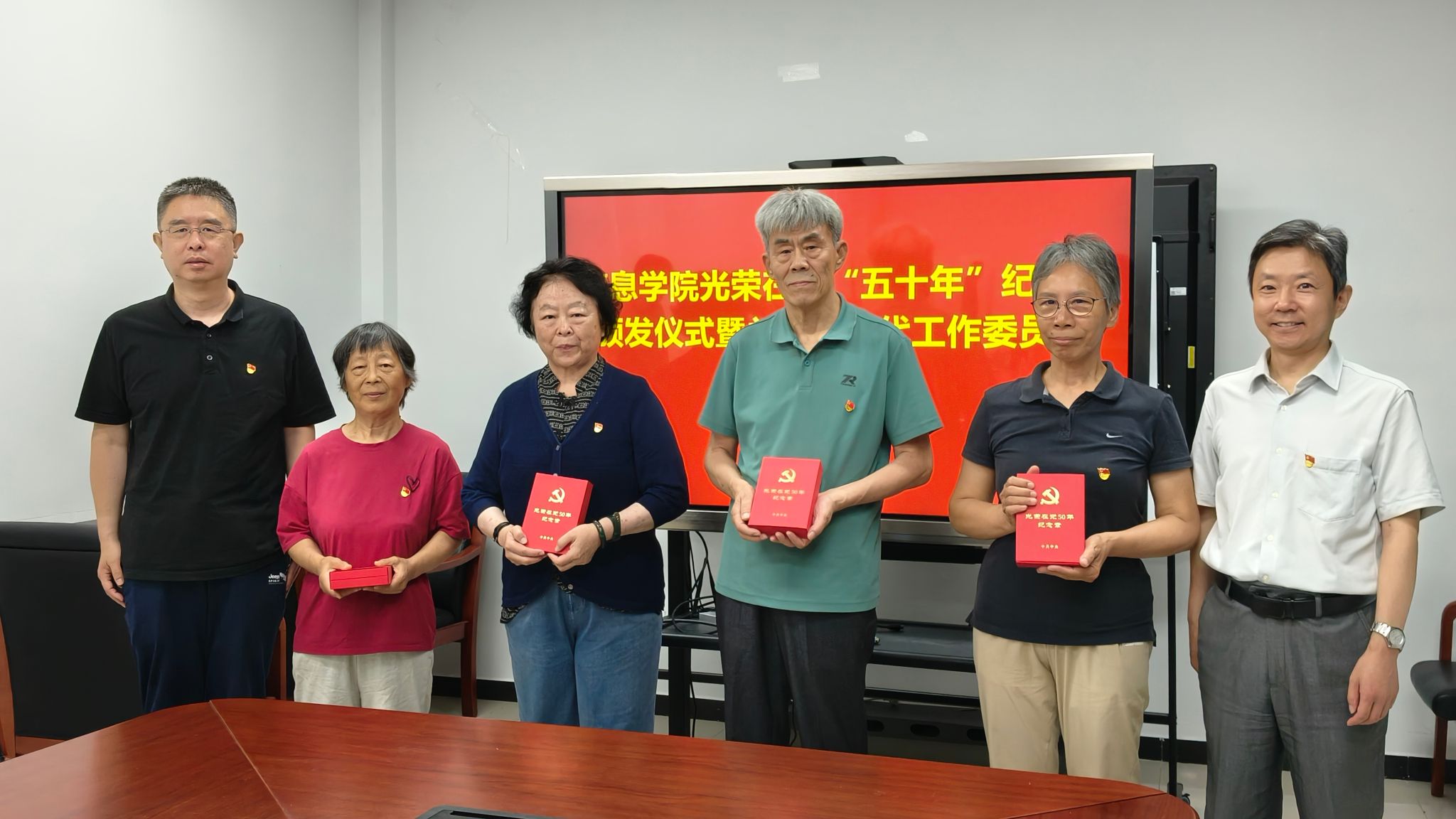 公司首先为“光荣在党五十年”的老党员颁发纪念章,并向他们致以崇高敬意和最诚挚的感谢。