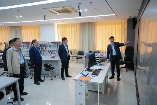 在电子技术基础实验室,专家组具体了解了公司开展智能教学情况,包括智能线上线下远程实验平台、自主设计的综合实验平台、实验过程数字化管理平台,实验使用的自制实验教学仪器、工具箱等教学设备。