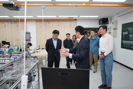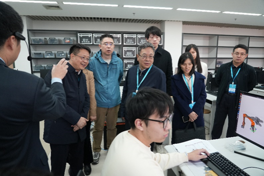 随后,专家组对中心各实验室进行了实地考察。实验中心积极引进电子信息、集成电路领域领军企业的先进技术,与华为、百度、小米等企业合作开发综合类实践课程。通过员工与企业捐助方式,分别与普源精电有限公司、罗克韦尔自动化公司共建产教融合实验室。大力推进虚拟仿真实验项目建设,构建虚实结合、科教融合的虚拟仿真平台。