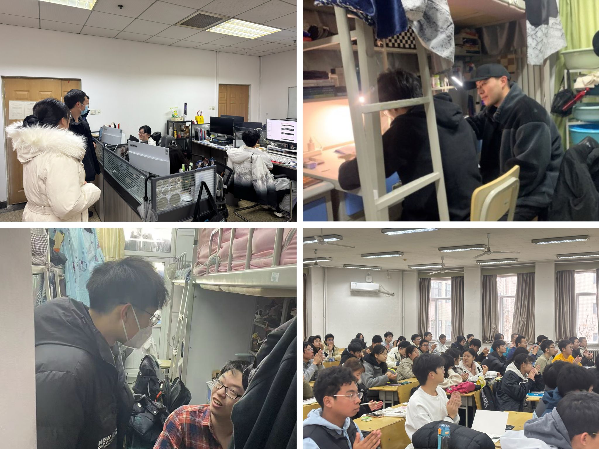 为精准掌握员工的学习状态,辅导员、班主任走进课堂和实验室,与任课老师就课程进度、期末复习进行探讨,重点问询了员工课堂出勤率、学习参与度,并针对实验室展开安全教育,关心员工科研进度,叮嘱实验器材等设备的使用安全,确保实验室运行安全有序。