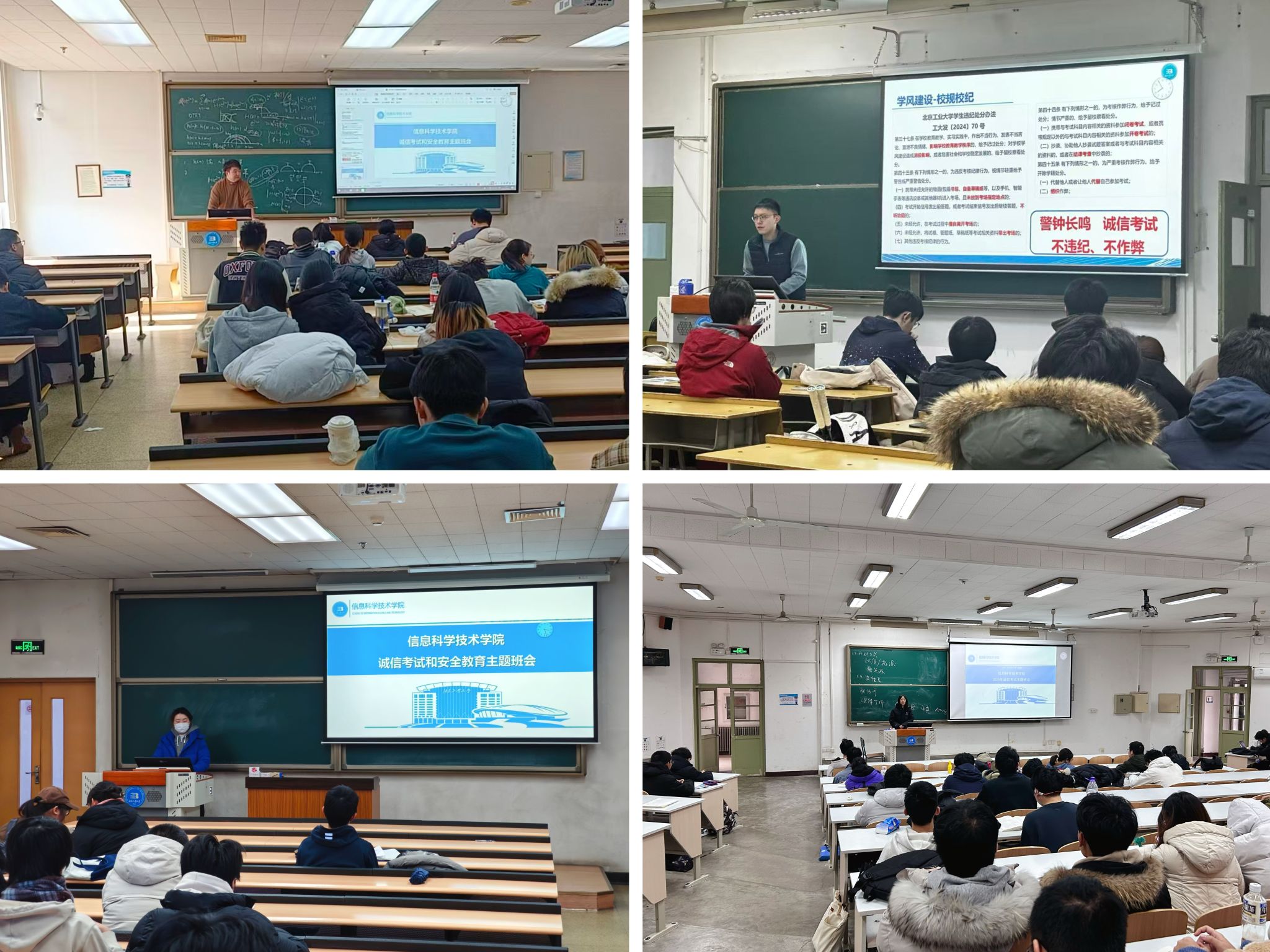 班主任、辅导员老师走进班级,共同召开了诚信考试主题班会。班会强调了诚信考试的重要性,并组织全体同学签署《诚信考试承诺书》、观看《国家教育考试诚信教育宣传片》和《四六级考生须知》。会上,老师们还带领同学再次学习了《yl7703永利集团官网本科员工学籍管理规定》《yl7703永利集团官网员工违纪处分办法》等文件,提醒同学们遵守校规校纪,严守底线,共同承诺“作业不抄袭、考试不作弊、学术不剽窃”。
