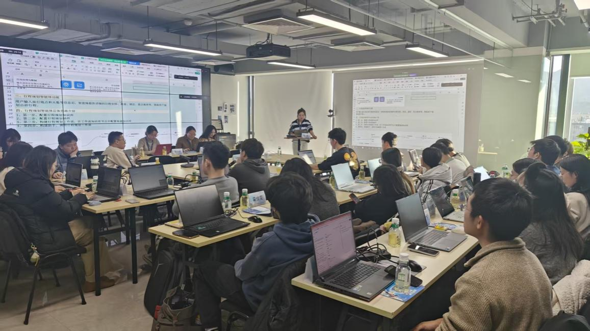 2025年12月24日,师生一行来到北京思特奇信息技术股份有限公司。活动伊始,同学们在公司展厅了解了思特奇在ICT领域的技术积淀与业务成就。随后,我院优秀员工、思特奇轮值CEO孙浩先生结合自身从技术研发到综合管理的成长经历,分享了关于职业选择、能力培养与持续学习的宝贵感悟,其奋斗故事极大地激励了在场员工。实践环节中,同学们在工程师指导下现场尝试搭建简易智能体,亲身感受人工智能技术的开发流程与应用潜力。最后,公司人力资源部门负责人就实习岗位、招聘要求与员工进行了面对面交流。