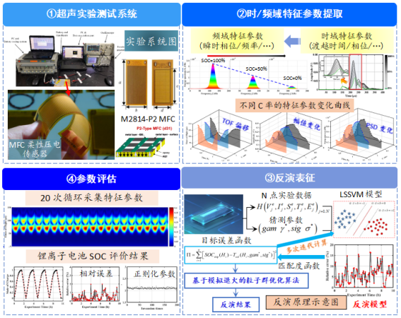 3. 发展了基于声学特征参量的锂离子电池状态参数评估新方法,构建了多物理场联动的超声导波传播特性理论分析模型,开发了锂离子电池状态参数超声无损评估新技术,实现了基于声特征参量的锂离子电池状态参数综合评价。
